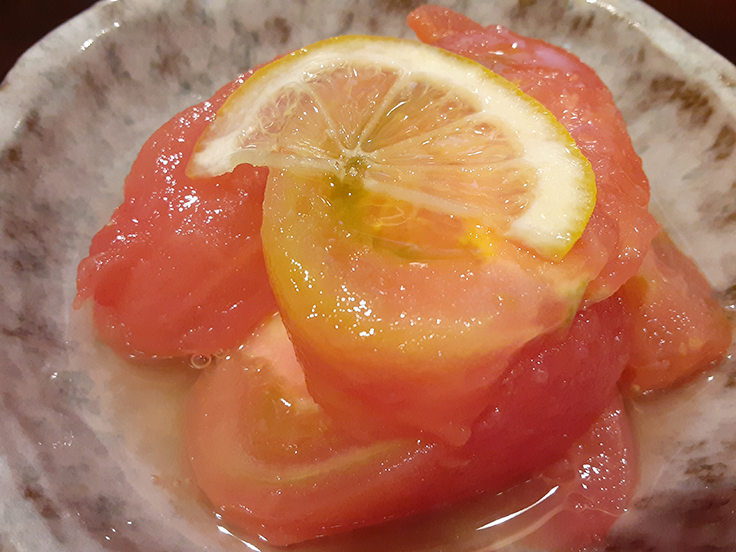 白ワイン+はちみつ+レモン汁+ハーブ少々に、旬のトマトを漬け込みます。ひんやり極旨です!